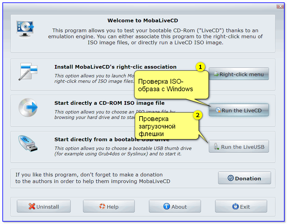 MobaLiveCD – ещё одна простенькая портативная программка, предлагающая возможность тестирования загрузочных флешек с помощью среды QEMU. Плюс к этому, она позволяет тестировать сами дистрибутивы.