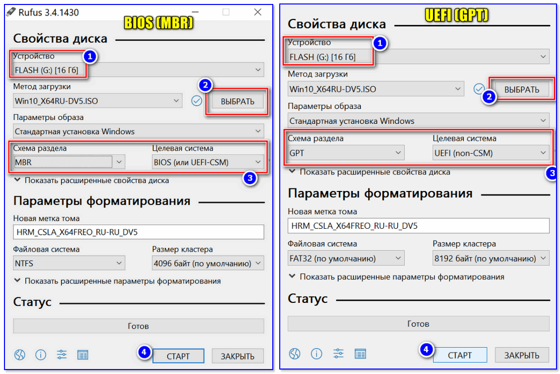 б) Файловую систему укажите NTFS. Новые сборки уже не поддерживают FAT32 — там есть файлы больше 4Гб. И, если ваша материнская плата довольно старая и не читает НТФС, то можно найти старую сборку Виндовс 10, которая влезет на 4 Гб и сделать ее в ФАТ32.