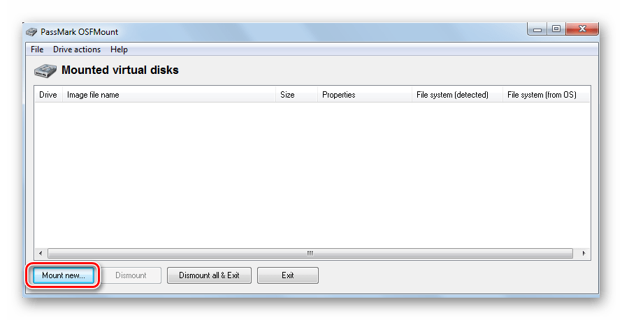 - В главном окне нажмите на кнопку «Mount new…», для создания носителя.