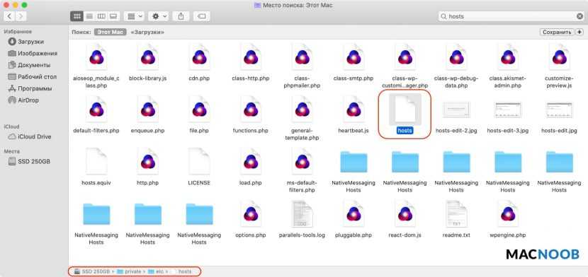 Для этого откройте Finder и введите в поиске «Hosts»: