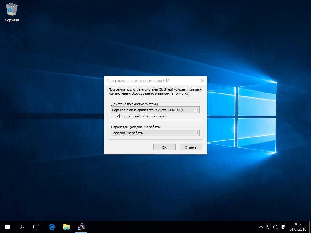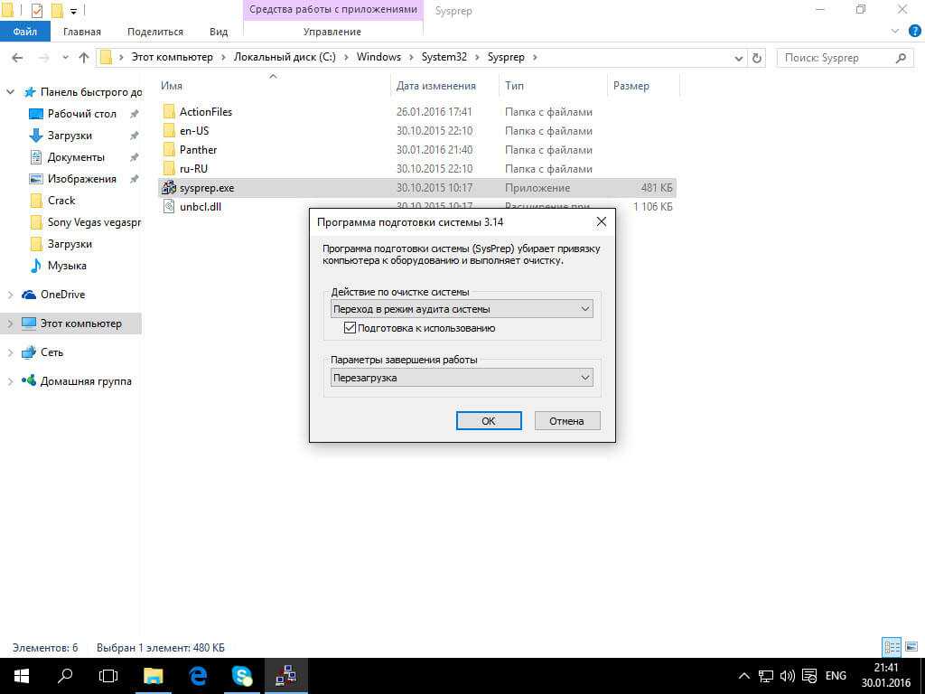 Если с системой все ок, то ее можно теперь начинать подготавливать к эталонному образу. В этом нам поможет встроенная утилита под названием sysprep.
