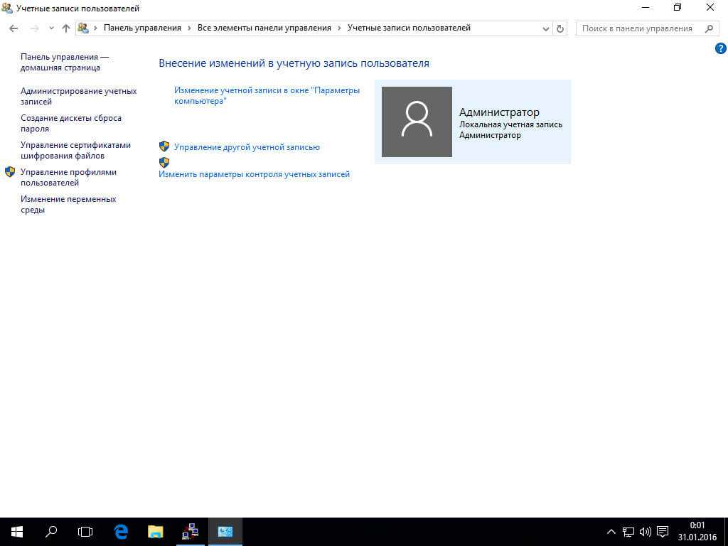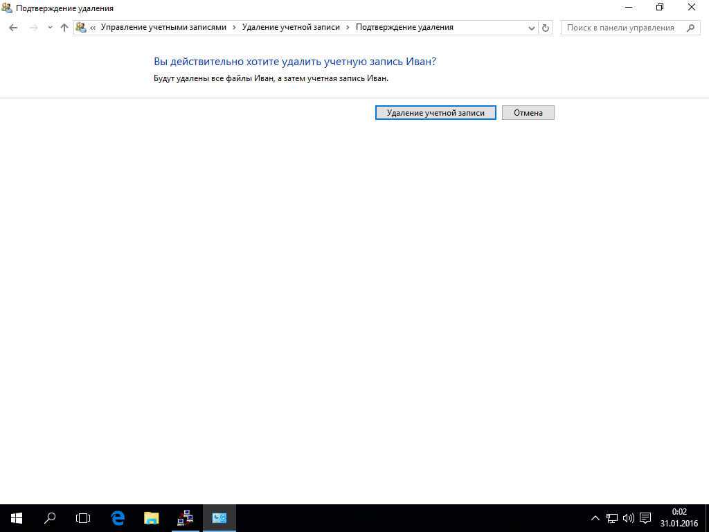Теперь, чтобы у вас не было старой учетной записи, при следующей установке, ее нужно удалить. Для этого переходим в панель управления > Учетные записи пользователей
