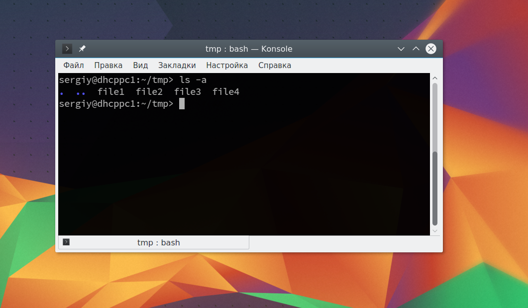 В каждой папке есть две скрытые ссылки, мы сможем их увидеть с помощью ls, выполнив ее с параметром -a: