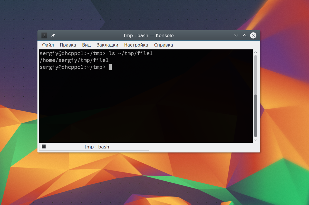 Это уже относительный путь linux, который начинается от домашней папки, она обозначается ~/. Заметьте, не ~, а именно ~/. Дальше вы уже можете указывать подпапки, в нашем случае tmp: