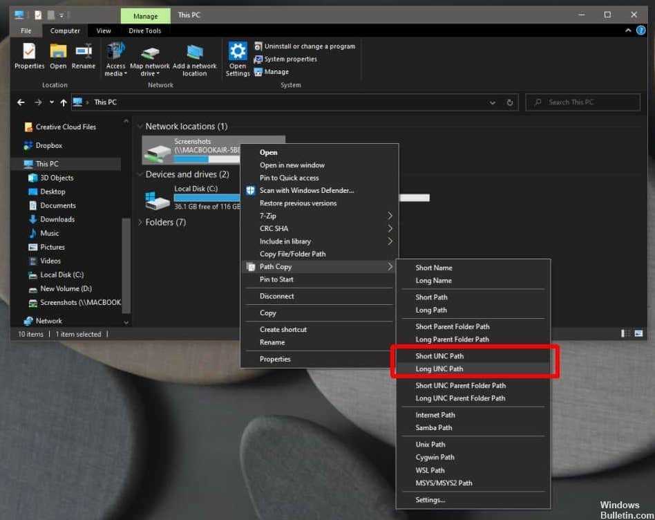 Чтобы решить эту проблему, т. Е. Чтобы было проще скопировать полный путь для сетевых расположений, вам необходимо установить pathcopycopy.