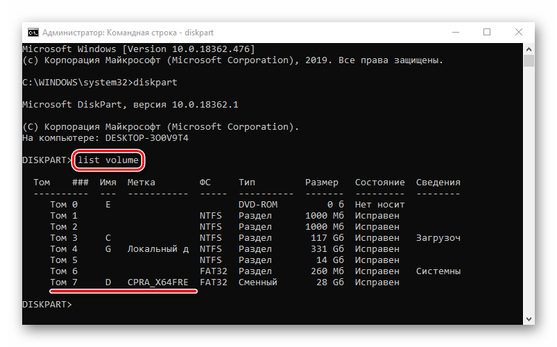 Способ 3: Diskpart