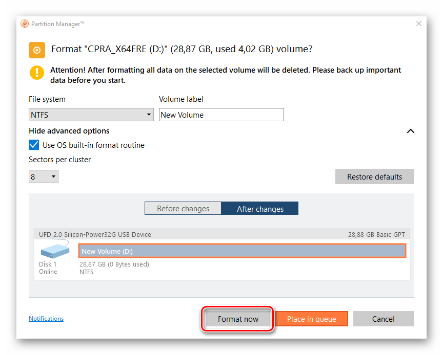 Нажимаем «Format now».