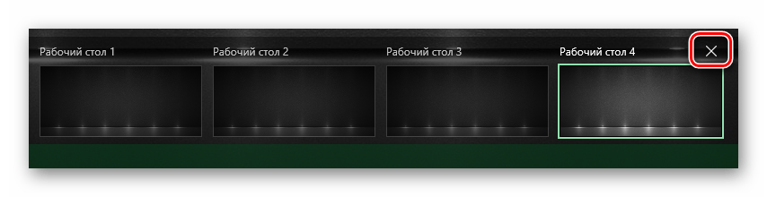 Нужно закрыть ненужный рабочий стол? Не проблема, открываем запущенные рабочие столы и внизу, возле них вы увидите крестик, который и исполняет закрытие.