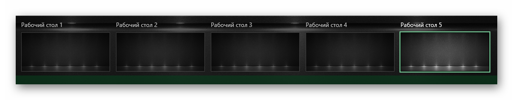 В результате вы увидите в нижней части экрана список созданных рабочих столов. Нажмите ЛКМ по той миниатюре, которая соответствует нужному рабочему пространству.