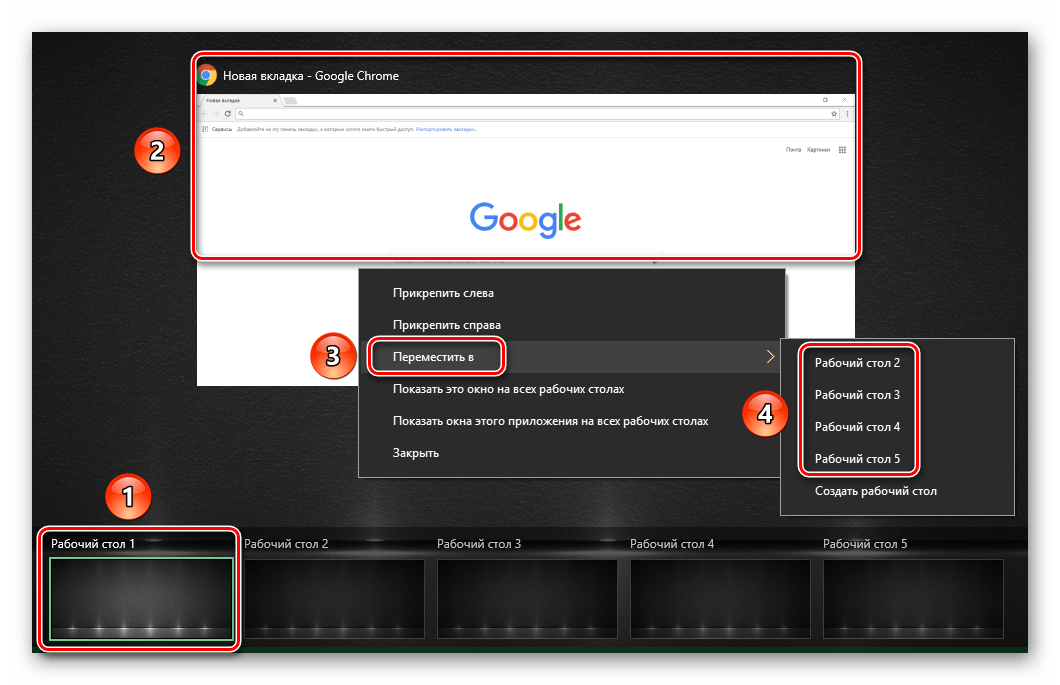 При необходимости вы можете переместить запущенное ПО с одного рабочего стола на другой. Это делается следующим образом: