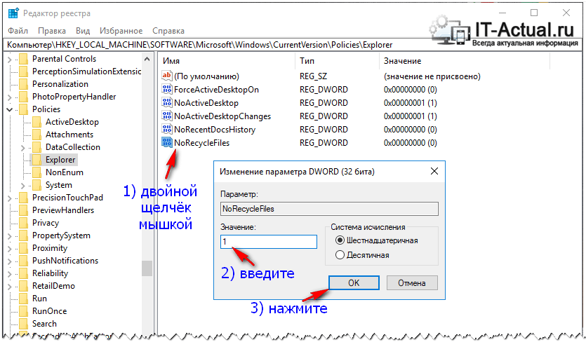 Отключение функции переноса удалённых файлов в Корзину через реестр