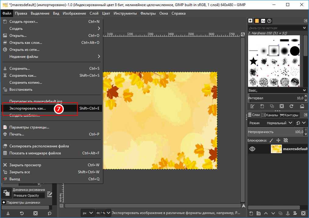 Сохраните изображение через меню «Файл» > «Экспортировать как… в формате BMP».