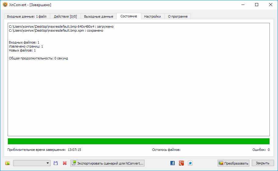 Так как GIMP не позволяет экспортировать индексированное изображение непосредственно в XPM. Для его преобразования в этот формат используем XnConvert . Открыв конвертер, добавьте в него полученный BMP-файл, перетаскиванием.