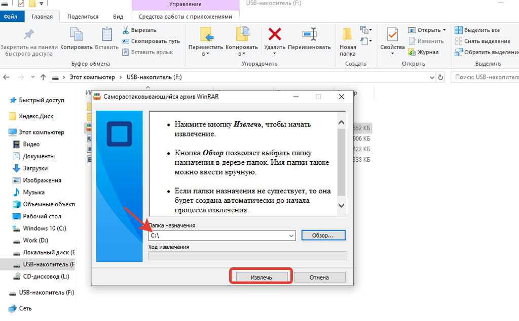 После загрузки запустите установочный файл openserver, откроется мастер извлечения опенсервер, выберете корень диска C для извлечения, а затем кликните на кнопку «Извлечь», начнется процесс извлечения.
