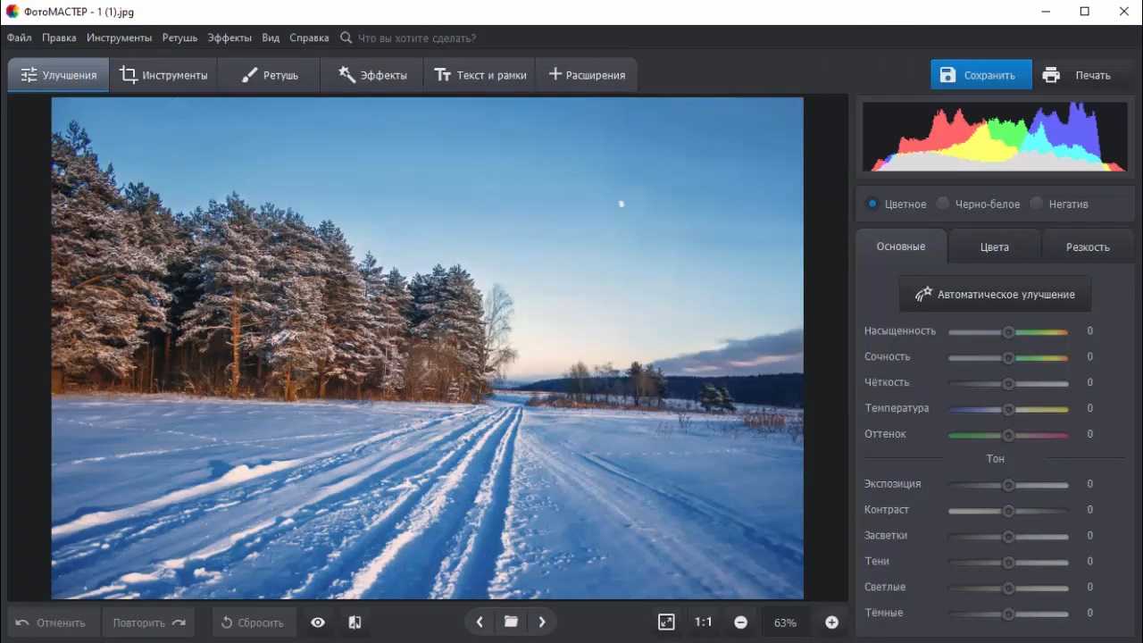 Простой в управлении многофункциональный фоторедактор с большим набором ручных и автоматических настроек. Среди инструментов
