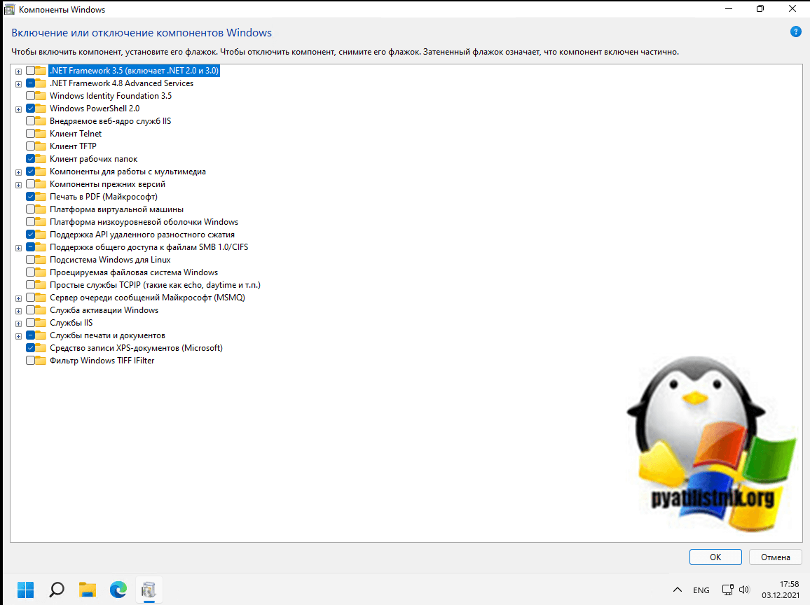 Подробнее: Включение или отключение компонентов Windows: таблица
