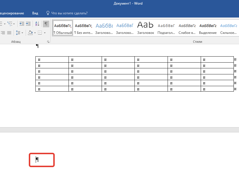 Теперь отключите отображение абзацев, нажав соответствующую («¶») кнопку на панели управления или используйте комбинацию клавиш «Ctrl+Shift+8».