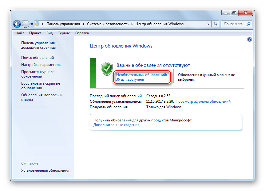 В открывшейся оболочке «Центра обновления» жмите по надписи «Необязательных обновлений…».