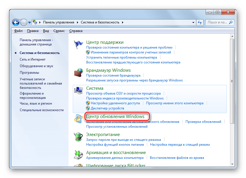 В появившемся окошке щелкайте по надписи «Центр обновления Windows».