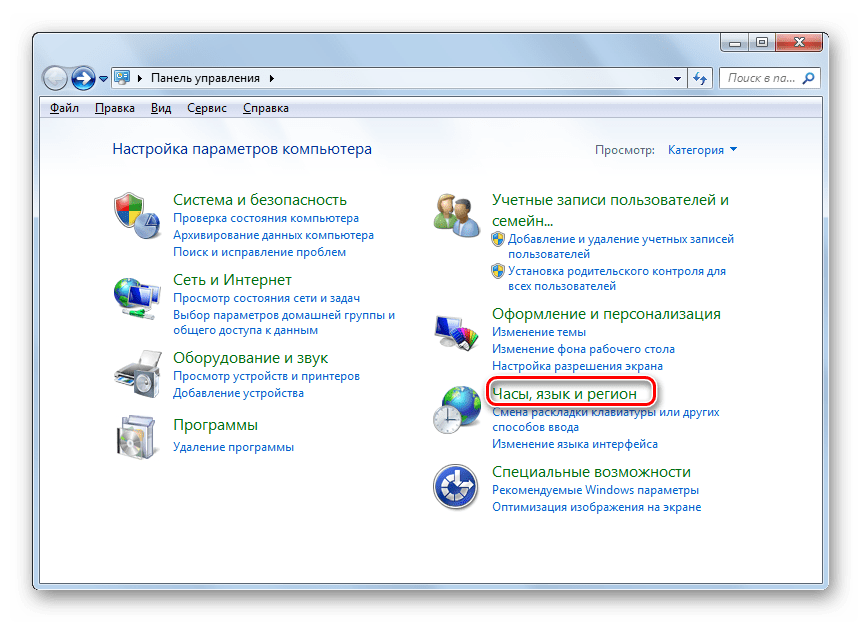 Далее щелкайте по наименованию «Язык и региональные стандарты».