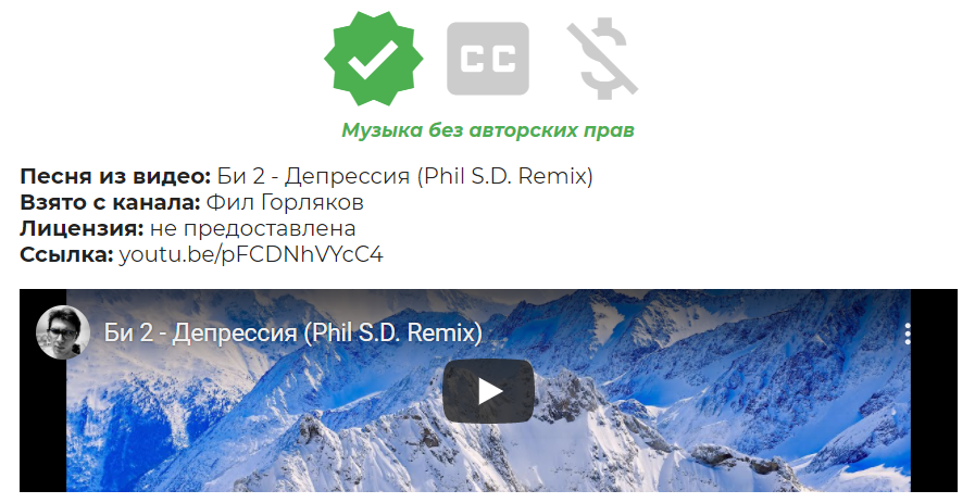 Перед тем, как добавить музыку в ролик, проверяйте её на наличие свободной лицензии. Дальше вы найдете еще несколько сервисов, которые помогут это сделать;