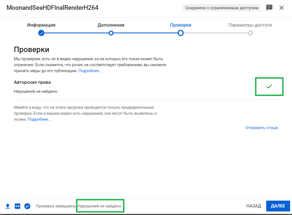 Нарушений не найдено. Видео можно смело публиковать