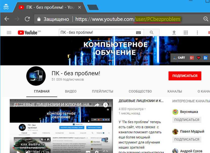 Существует более точный способ узнать URL канала YouTube. Для этого: