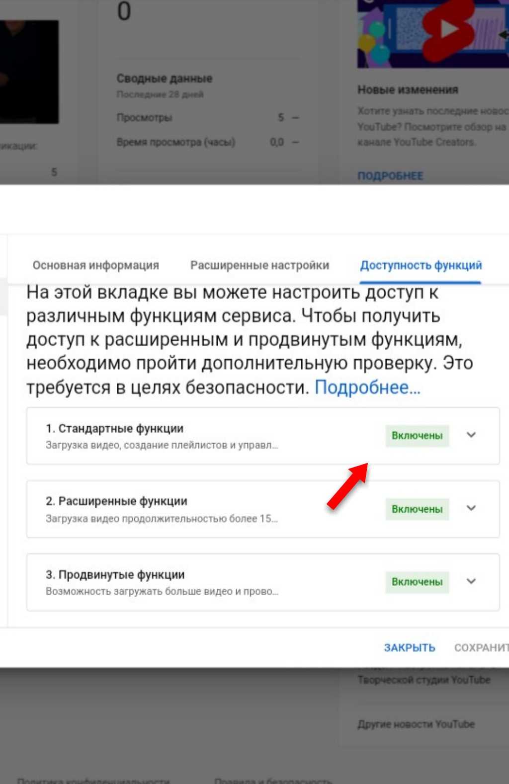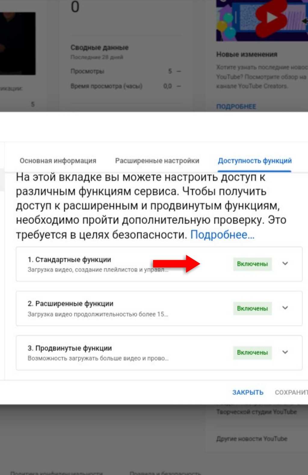 Справа появится подтверждение — кнопка «Включены» напротив строки «Стандартные функции».