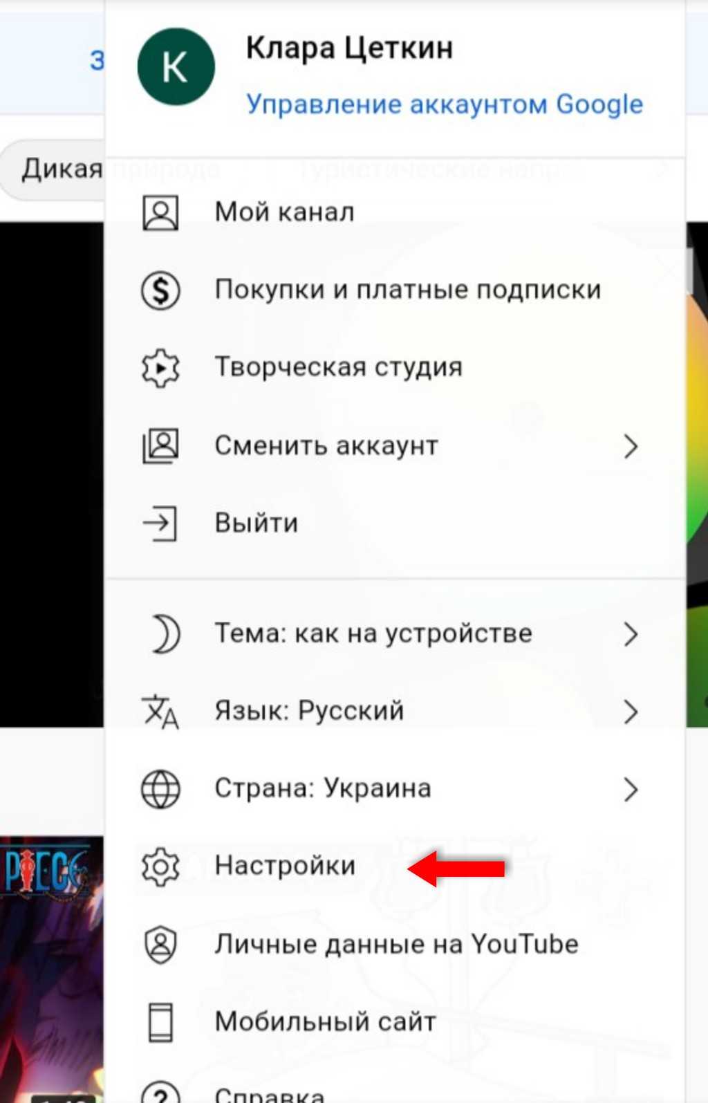 Либо войдите в свой аккаунт YouTube на компьютере. Кликните на аватарку, откройте «Настройки» и нажмите на «Аккаунт».