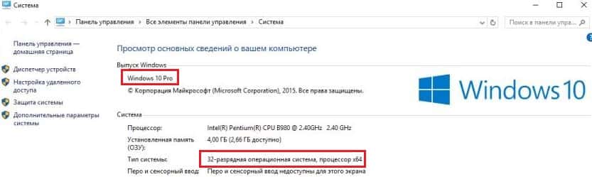 В открывшемся окне вы сможете увидеть издание вашей операционной системы (в примере Windows 10 Pro), сколько оперативной памяти установлено в этот компьютер, какой процессор и его частота, и разрядность системы в поле «Тип системы». То есть в поле «Тип системы» вы увидите 32х или 64х разрядная операционная система установлена, и поддерживает ваше оборудование 64х разрядную Windows или нет.