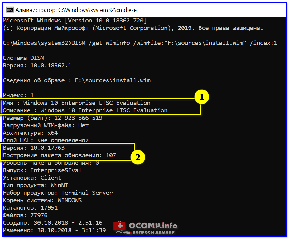 DISM /get-wiminfo /wimfile:»F:sourcesinstall.wim» /index:1