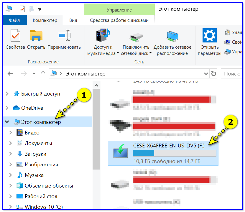 1) Для начала подключите флешку к USB-порту и узнайте букву, которую присвоила ей Windows ( в моем случае — буква «F:»).