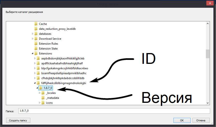 - Через проводник или самостоятельно перейдите по следующему адресу: C:UsersИмя пользователя (Пользователи)AppDataLocalGoogleChromeUser DataDefaultExtensions. Последняя папка «Extensions» и подразумевает расширения.