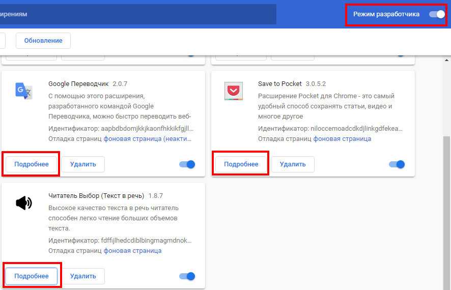В этом же окне можно запустить режим разработчика. С его помощью пользователь может просмотреть расширенное описание каждого плагина, а также, загружать собственные расширения.