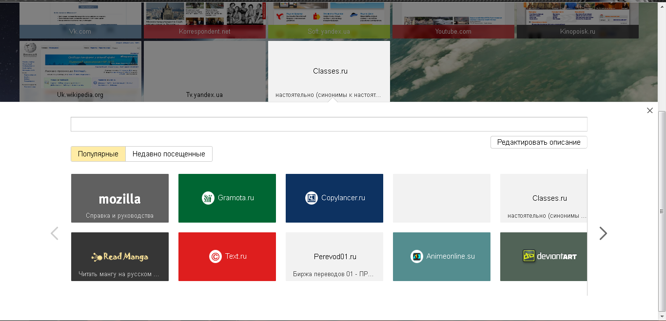 - «Популярное» – раздел, где в первую очередь показываются самые популярные сайты пользователя. Если пролистать страницу дальше, то можно увидеть другие часто используемые ресурсы.