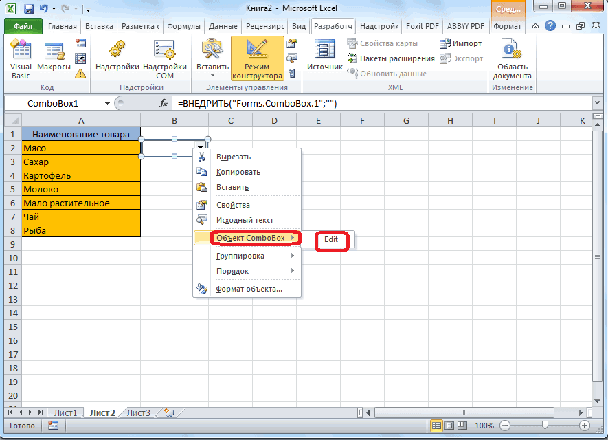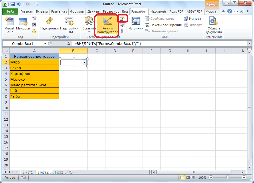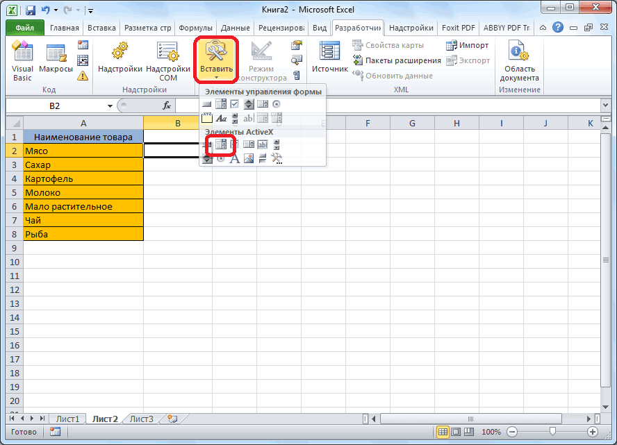 Способ 3 — как в excel сделать выпадающий список с использованием ActiveX