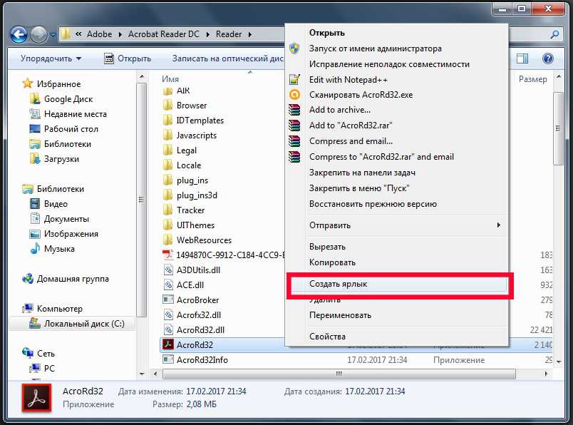 - Кликните по названию файла правой кнопкой мыши и выберите функцию «Создать ярлык».