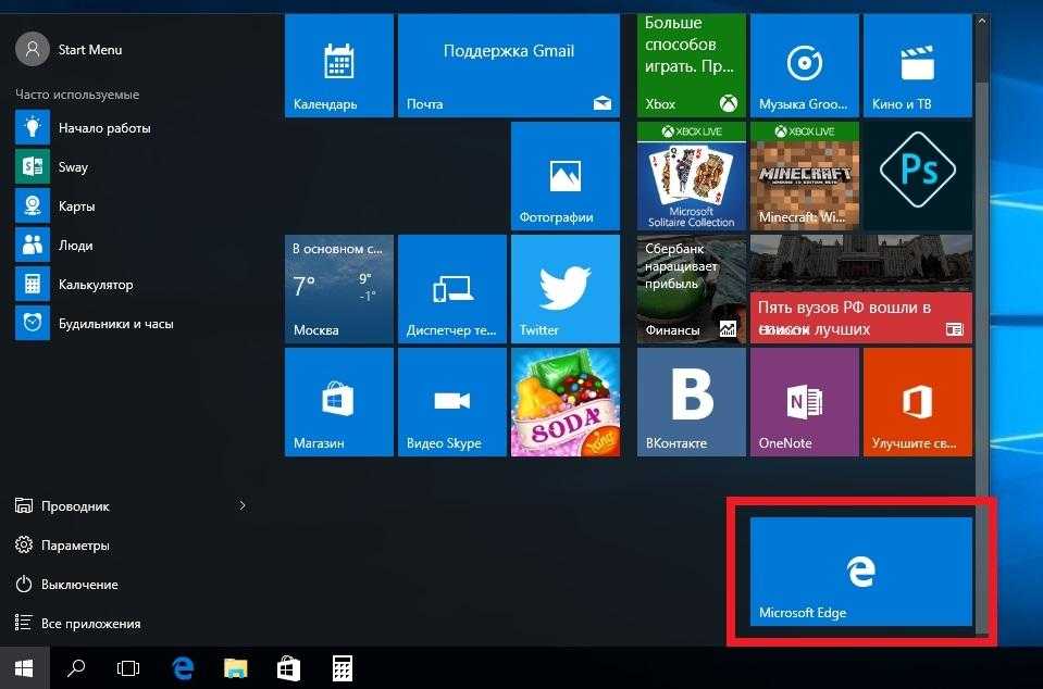 Чтобы изменить месторасположение плитки, достаточно перетащить ее в любую область начального экрана. В последней версии ОС Windows 10 Pro все плитки делятся на группы, которые можно назвать определенным именем. Мы перенесем ссылку на браузер Microsoft Edge из одной группы в другую. Сейчас она находится в группе «События и общение».