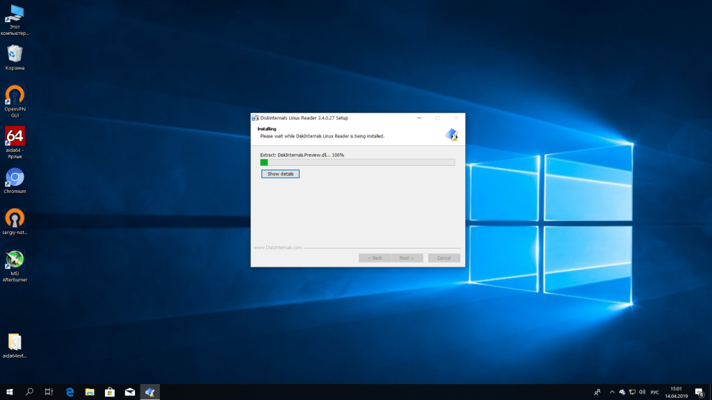 Это самый простой способ открыть ext4 в windows 10. С помощью программы DiskInternals Linux Reader вы можете извлечь файлы из раздела с файловой системой Linux не добавляя её поддержку в ядро системы. Скачать программу можно на официальном сайте. Установка программы аналогично предыдущей сводится к нажатию кнопки Далее: