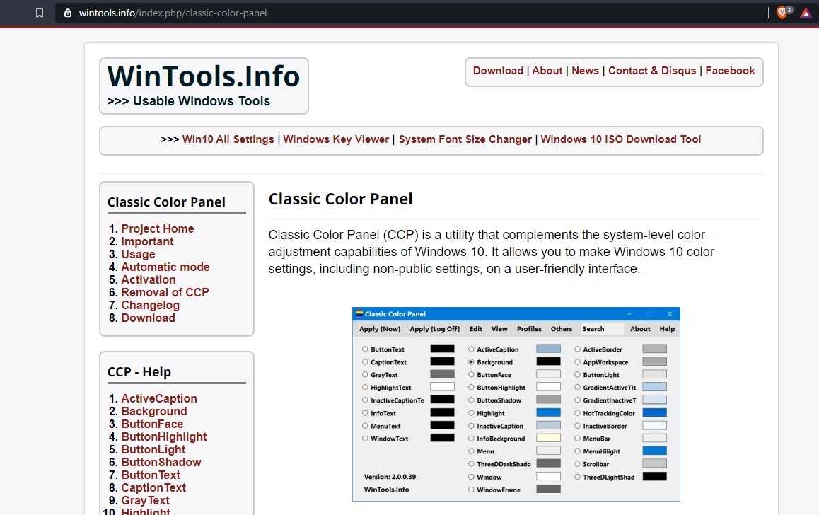 Classic Color Panel — небольшая утилита для изменения цветов почти всех элементов, которую скачать можно с официального сайта: www.wintools.info/index.php/classic-color-panel. Утилита работает путем внесения изменений в реестр, которые можно сделать и вручную.