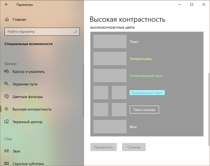 Как выбрать цвет, если вы используете высококонтрастную тему .