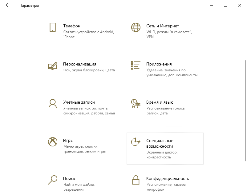 Как зайти в «Параметры» уже указывалось ранее. Далее требуется выбрать раздел, который указан на скриншоте:
