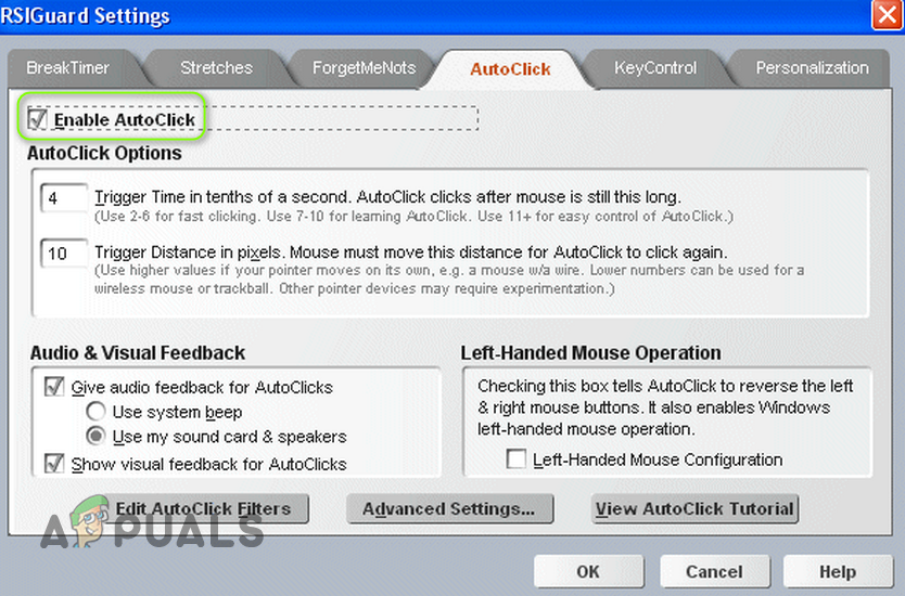 Если вы не хотите удалять проблемное приложение, проверьте, можете ли вы отключить функцию зависания мыши в настройках приложения. Например, запустите приложение RSIGuard и снимите флажок AutoClick, чтобы решить проблему. Если параметр не работает или не применяется, обязательно обновите утилиту, которая вызывает проблему.