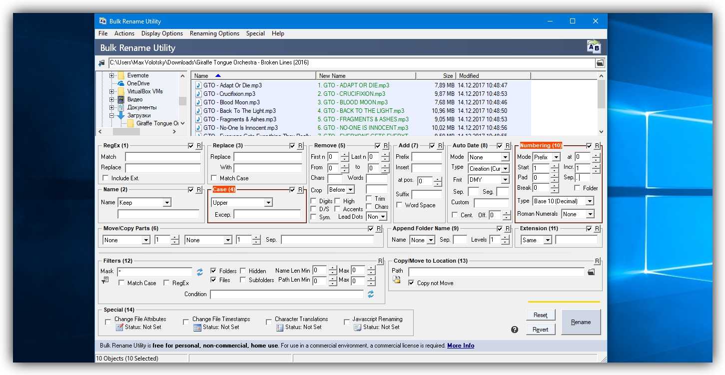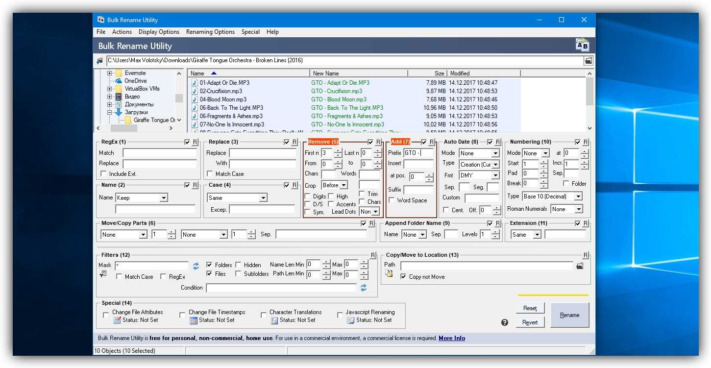 Никакие встроенные инструменты не сравнятся по функциональности со специальными программами, разработанными специально для пакетного переименования. В Сети можно найти множество таких бесплатных утилит, достаточно ввести в поиске bulk file rename.