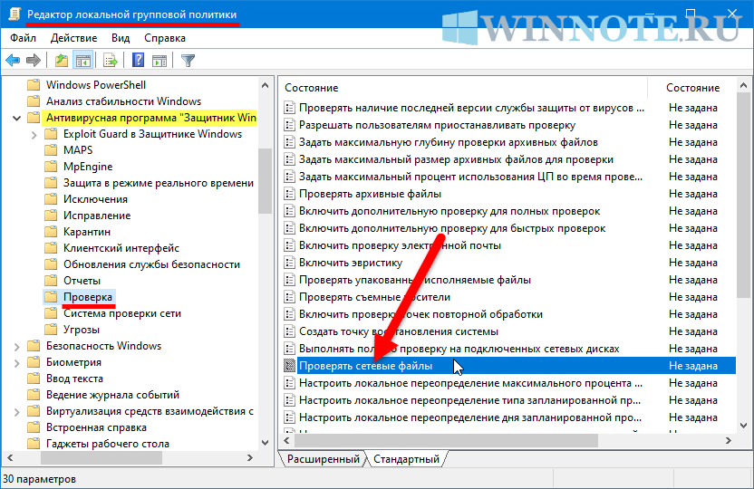 Включить (отключить) проверку архивных файлов антивирусом безопасности Windows в групповой политике