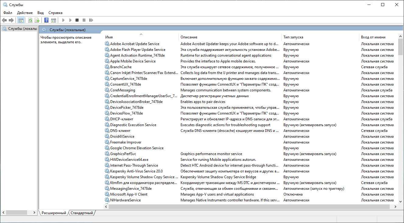 Важно! Это основные службы Windows 10, но далеко не все. Отключение их неизбежно отрицательно отразится на работоспособности операционной системы в целом