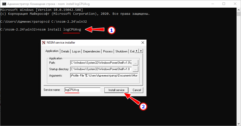 Аргумент ExecutionPolicy нужен для предоставления скрипту временных прав на запуск. Если в качестве службы вы устанавливаете какую-нибудь утилиту, то поле может быть оставлено как пустым, так и с указанным в нём аргументом данной конкретной утилиты.