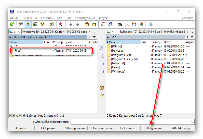 «Проводник» Windows 10 иногда не в силах стереть некоторые данные из-за собственных ограничений. Последние отсутствуют в сторонних программах для удаления файлов, что делает их эффективными в решении рассматриваемой проблемы. В качестве примера используем популярное приложение Total Commander.