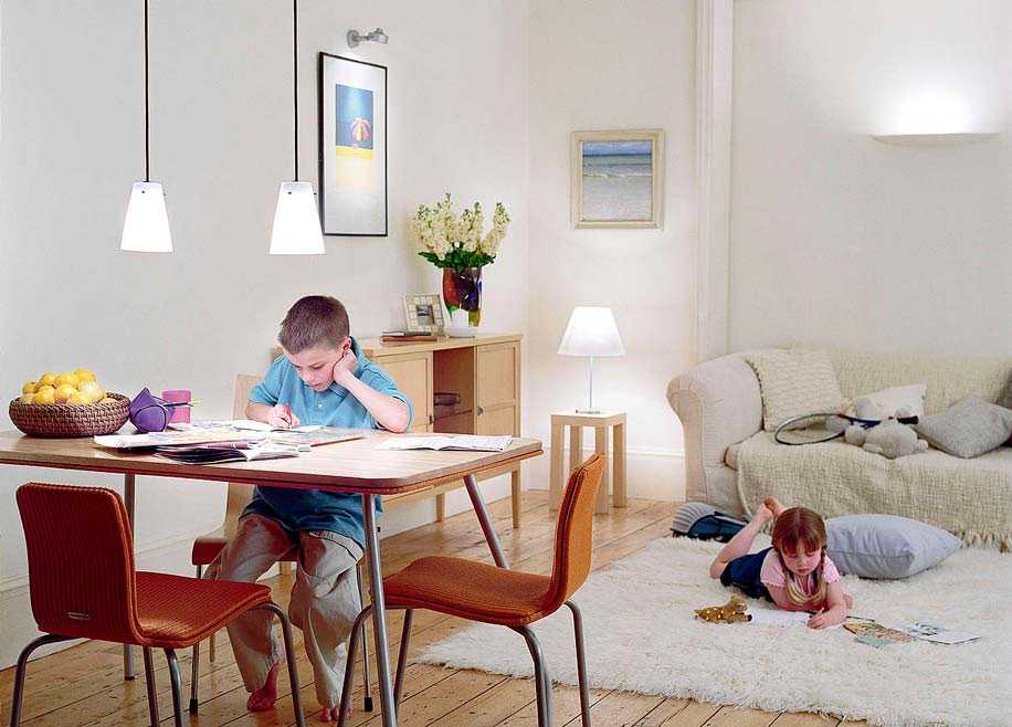 Лампы с естественным белым светом лучше устанавливать в прихожей, детской комнате, в рабочей зоне кухни, рядом с зеркалами или в местах, которые обычно используются для чтения. Такое освещение не искажается, оно является нейтральным для глаз
