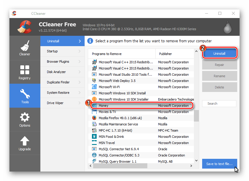Способ 1: удаление стандартных приложений с помощью CCleaner